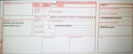 (Pošaljite nam potvrdu o uplati i adresu za slanje zahvalnice na e-mail: arsorganizadar@gmail.com i zahvalnica će stići na Vašu adresu)